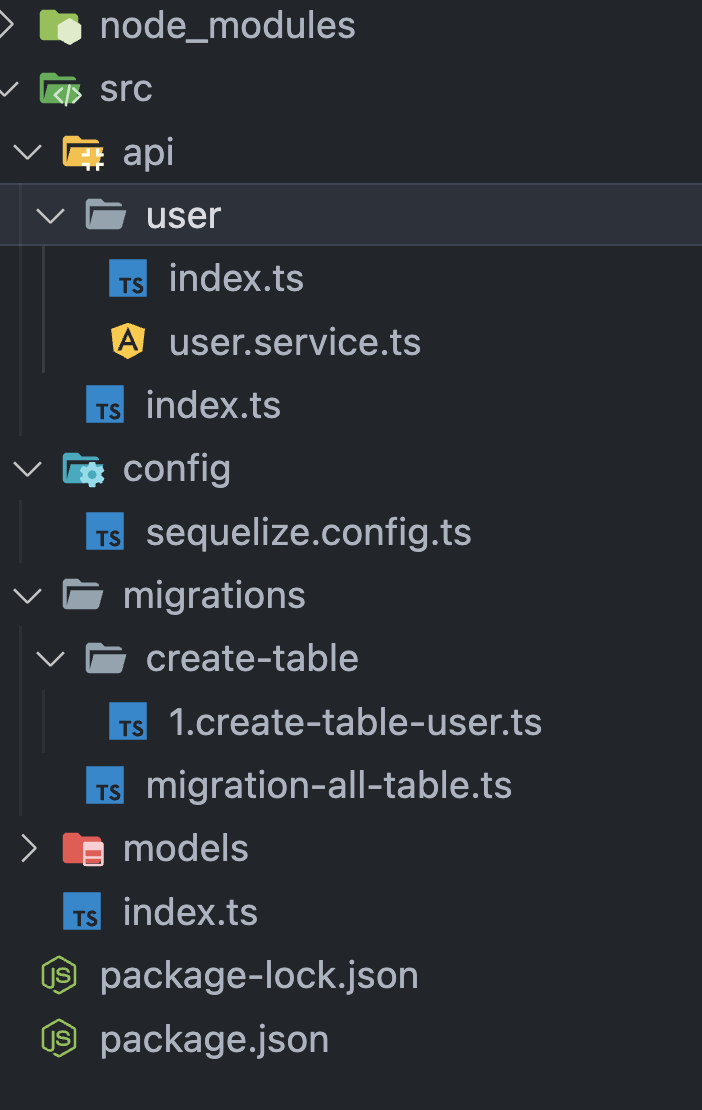 폴더 구조는 src에 api 폴더를 만들고, user api를 수행할 user 폴더 안에 라우팅을 처리할 index.ts와 비즈니스 로직을 처리할 user.service.ts를 만들어서 진행한다.