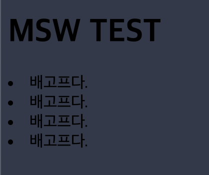 자 이제 우리가 만든 MSW 가짜 API를 이용하여 간단한 리스트를 UI에 그리는 코드를 짜보자.