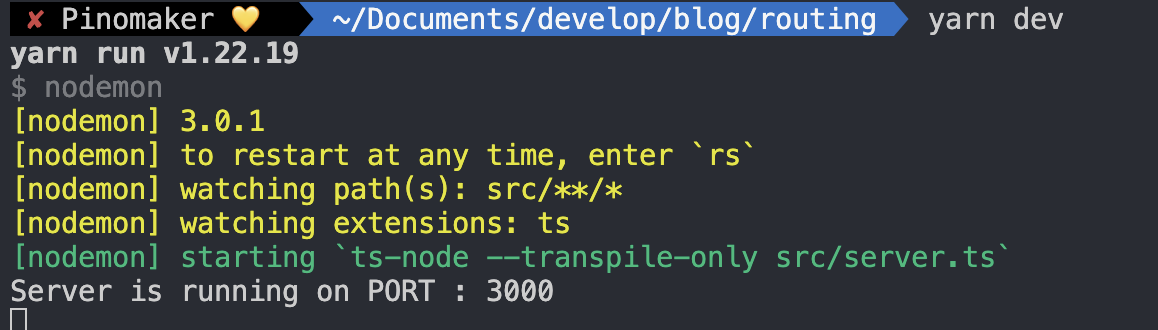 이렇게 구성했다면 이제 실행을 위한 nodemon.json 설정과 packange.json에 실행 스크립트를 작성하고 실행해보자.