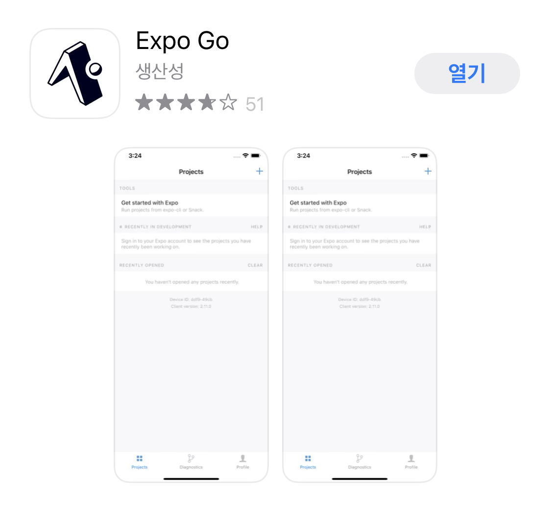 저는 Xcode 혹은 Android Studio를 설치하여 진행하지 않고, expo로 휴대폰과 연결하여 사용 합니다.