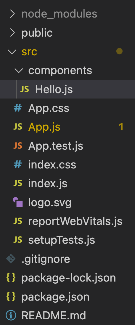 01. src 폴더 안에 components 폴더 생성 후 Hello.js파일 생성