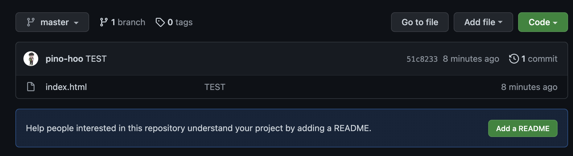 해당 과정을 마쳤으면 github에 생성한 Repository에 들어가면 아래와 같이 되어있을 것이다.