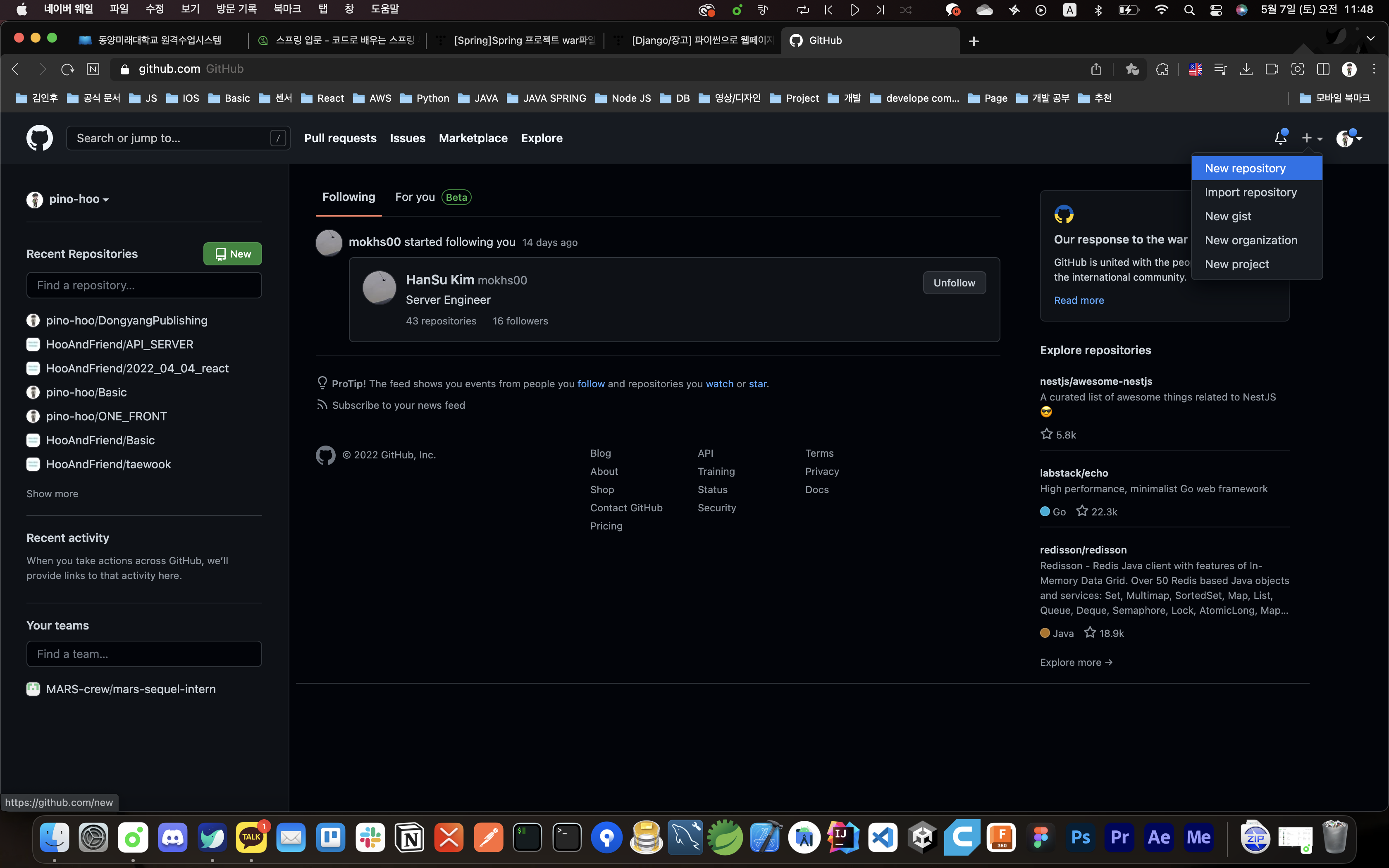 해당 강좌는 Github 계정을 생성했다는 가정하에 진행 합니다.