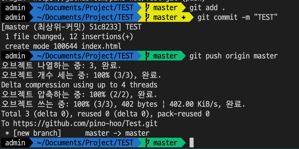 기본 셋팅은 여기까지이며, 이제 git 명령어를 사용하여 파일을 업로드 할 것 입니다.