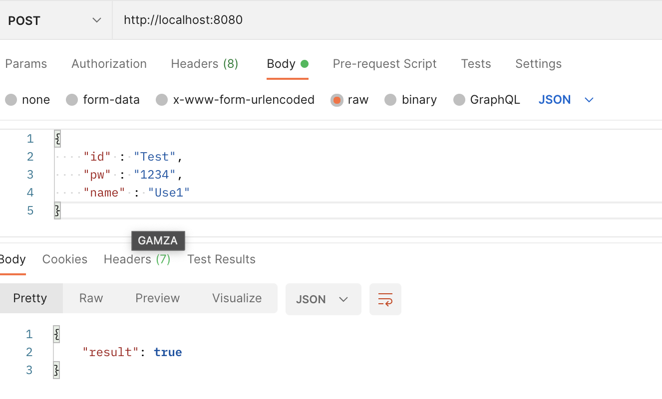 POSTMAN을 이용하여 데이터가 잘 들어가는 지에 대한 확인도 진행한다.