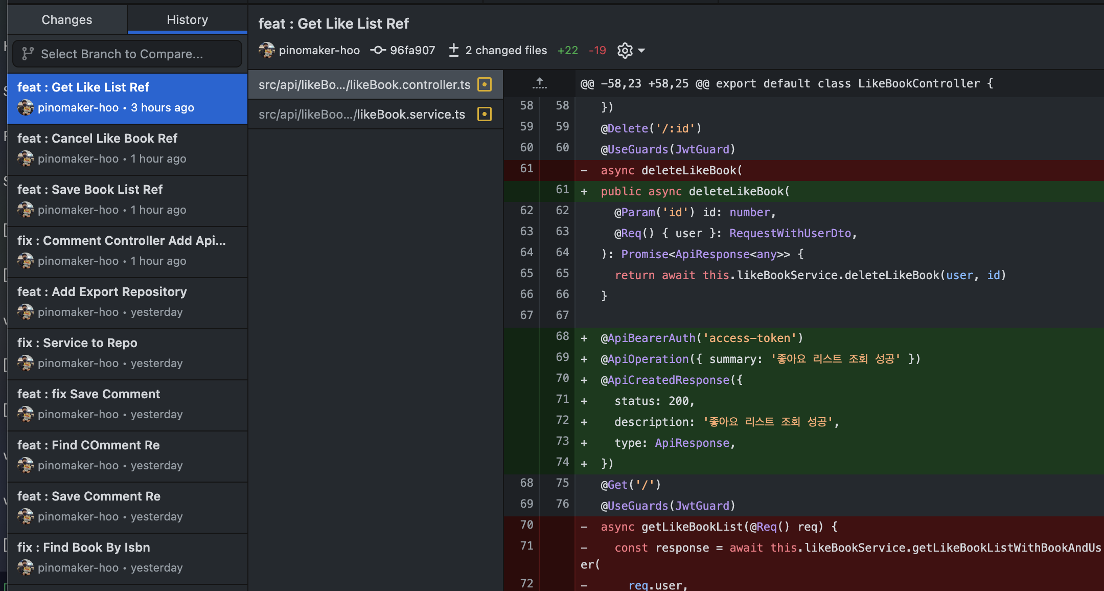 commit을 할 때는 내가 어떤 내용을 작업 했는 지에 대한 메세지도 작성할 수 있다. 이 때는 보통 작업한 이력에 따라 작성하게 되며 필자는 feat(추가 기능), fix(버그 수정), doc(문서 수정) 등을 자주 애용한다.