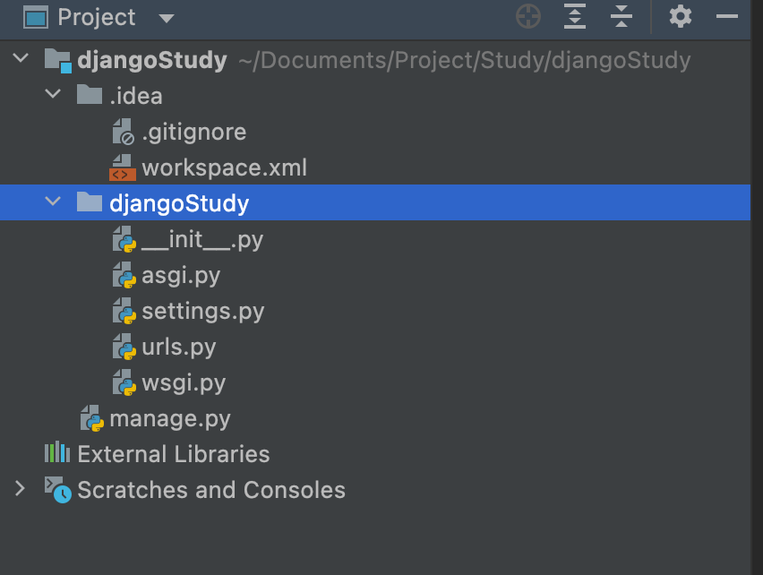 django-admin startproject djangoStudy #djangoStudy 프로젝트 폴더 생성