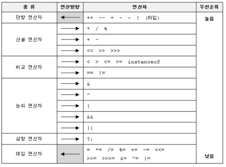 [JAVA] 연산자(1) 연산자의 종류와 우선 순위, 결합 규칙